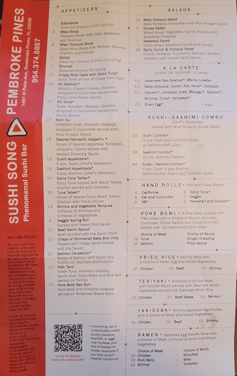 Welcome to Sushi Song - Pembroke Pines, a hidden gem nestled in the heart of Pembroke Pines, Florida. Located at 1491 N Palm Ave, this enchanting sushi bar offers a delightful fusion of flavors and a vibrant atmosphere that you won't soon forget. With a reputation for fresh, high-quality ingredients and innovative roll creations, Sushi Song is quickly becoming a favorite among sushi enthusiasts.